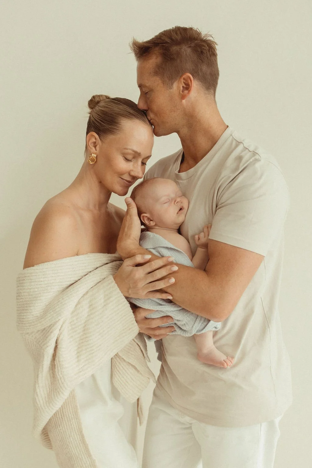 I love shooting babies in very minimal clothing, allowing me to capture as many of their tiny details as possible. I recommend having a sweet nappy cover and a couple of swaddles and blankets on hand. If the weather is cool, some neutral coloured tights and a slouchy knit on top is always a cosy option.
